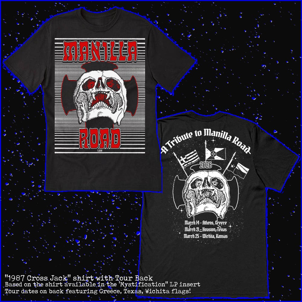 Finally a reprint of one of the most mysterious designs in the history of Manilla Road - the 1987 Cross Jack T. The design was originally made by the creator of the BatJack, Ryan Hendricks. The design was [to our knowledge] only available from an order form in the "Mystification" LP and produced by W.E.B. productions on the East coast, with whom the band only worked with for a very short time.